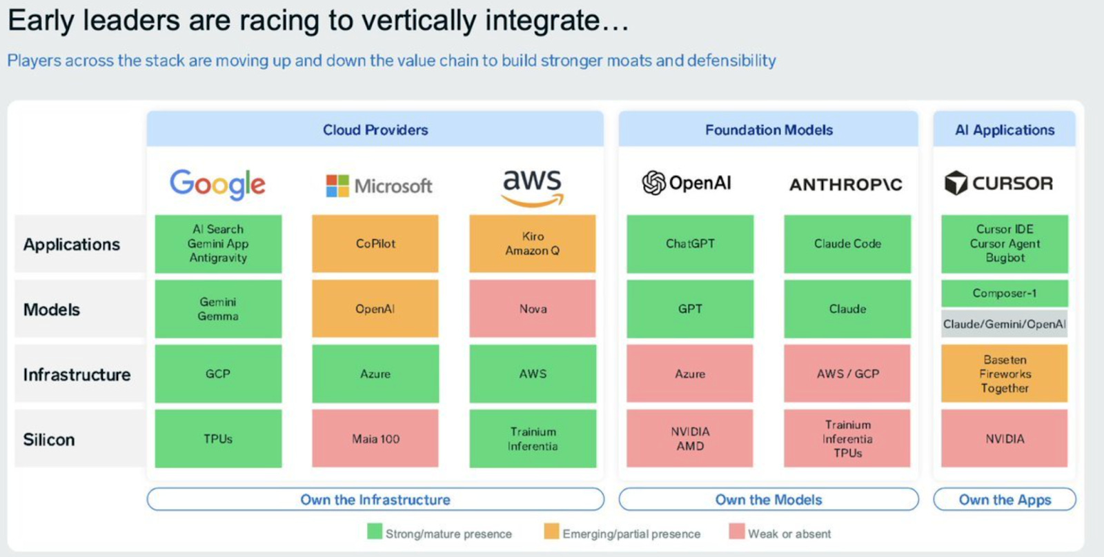 At this point, model quality alone is no longer sufficient to assess long-term positioning. What matters is who controls how much of the stack.